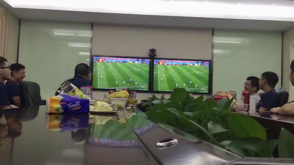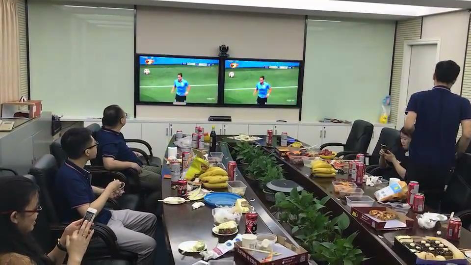 生日晚宴之后正值2018俄罗斯足球世界杯赛事转播,同事们欢聚一起观看世界杯,足球是团队力量、技术技巧和个人技能以及天赋的综合体现。
